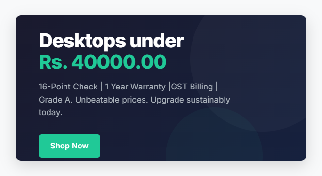 Save up to 60% on business-grade Dell, HP & Lenovo devices. Fully tested, warranty included and delivered across India.